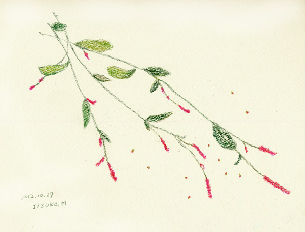 今日はお休みの水曜日でお昼すぎから「ふくろう」を描きました。 先週末からはじめて、月火は休んで今日完成。うすい紙をケント紙において、強く線を描いてケント紙に溝をつけます。それから上にパステルの粉をまぶして絵にしました。最初は溝に粉が入るのがこわくて薄く塗っていたので時間がかかりましたが、いっぱい塗っても結構きれいに白い溝は残ります。消しゴムで修正したり、色鉛筆で濃く塗り直したりしてできました。 絵本を見ながら描いたのですけど、かわいいふくろうですよね。 午前は駅の魚屋さんに行ったり、インフルエンザの予防接種をしたり。天気がよくていつもと違う道をぷらぷら歩いたら、パン屋さんを見つけて、ちょっと得した気分でした。ハロウインの仮装をした小さい子たちの集団にも会いました。付添いのお母さんたちは普通の服でした。